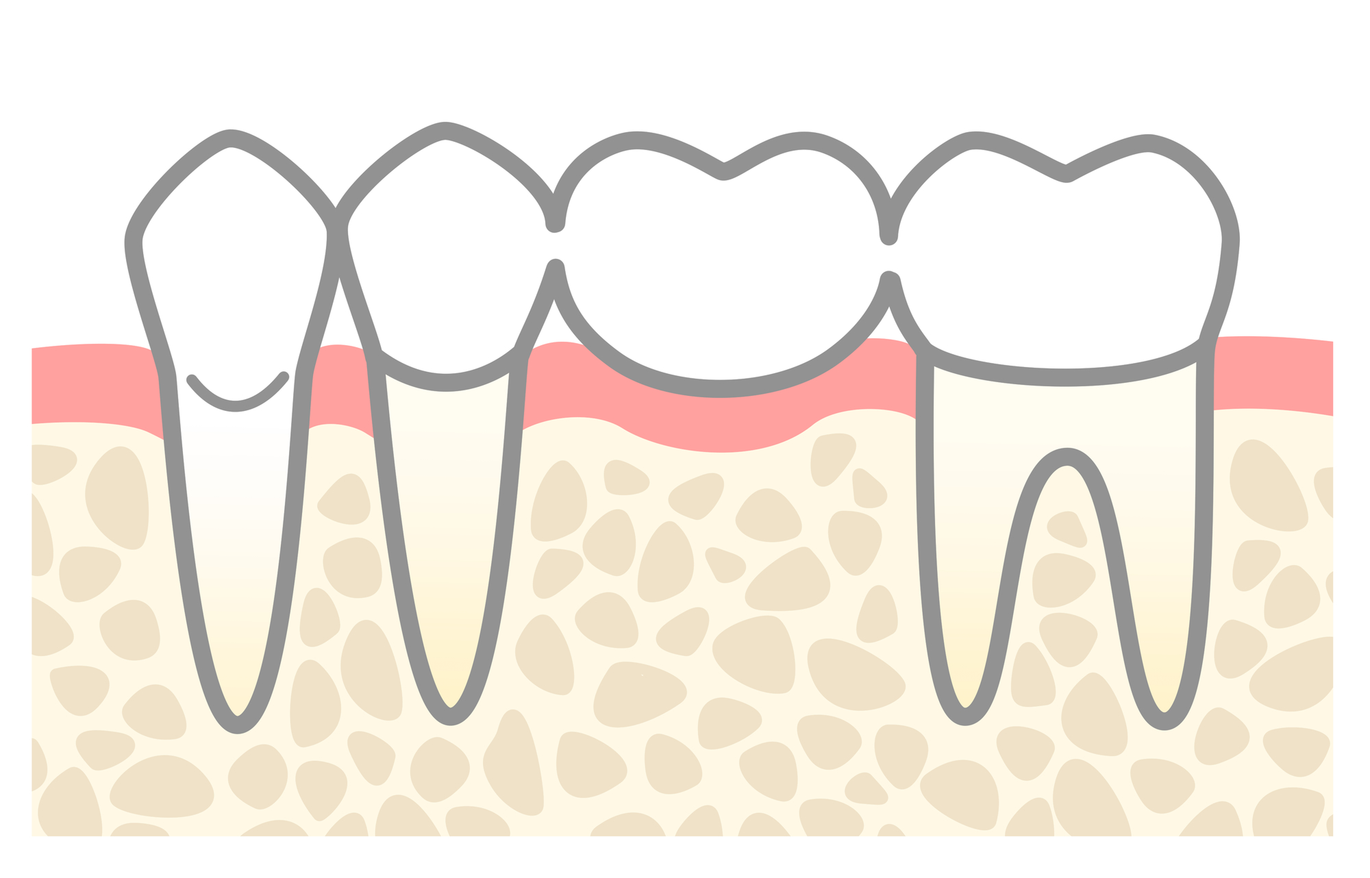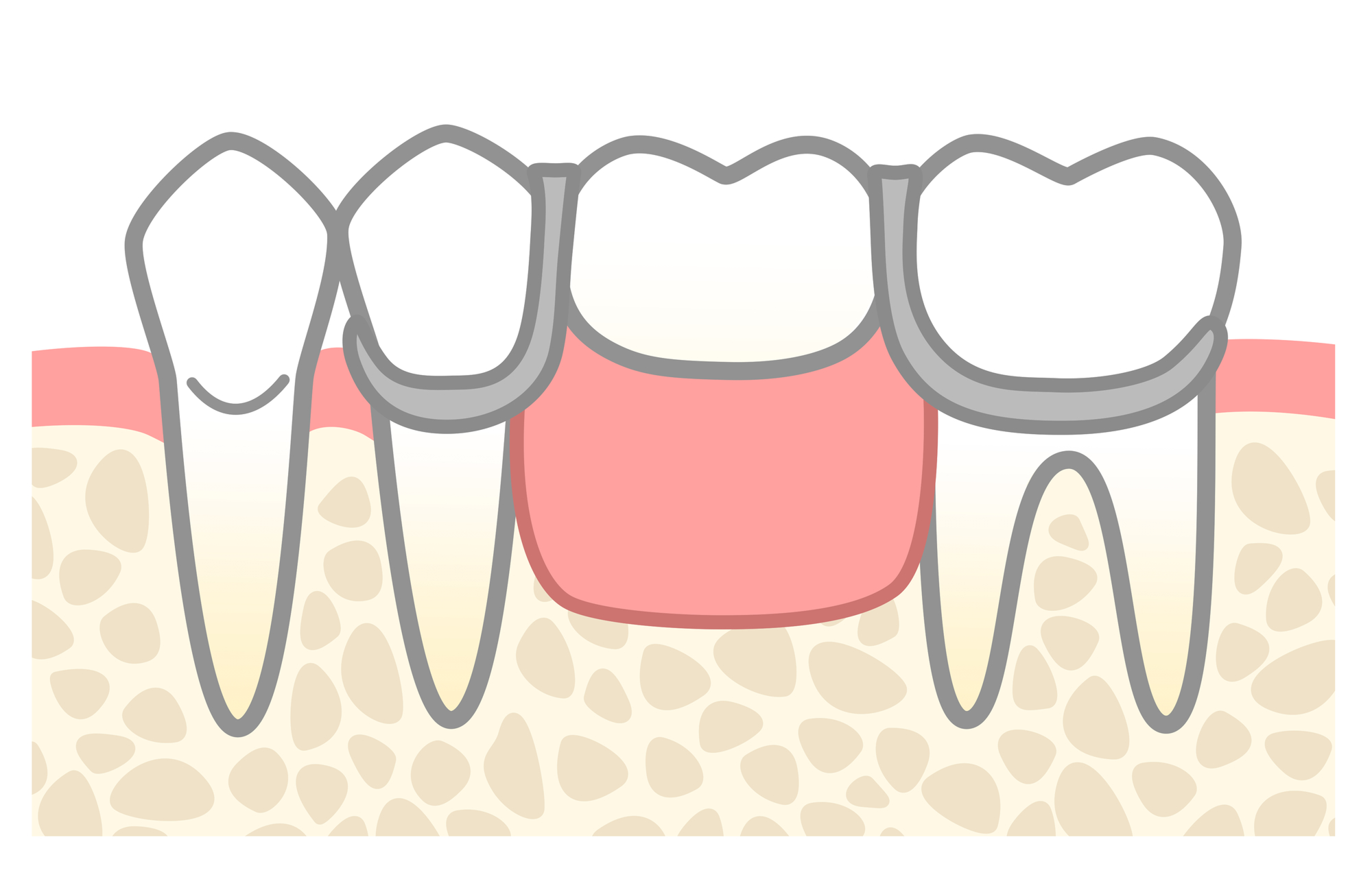 歯がない部分の両隣の歯を削り、つながった被せ物を接着剤でつける方法